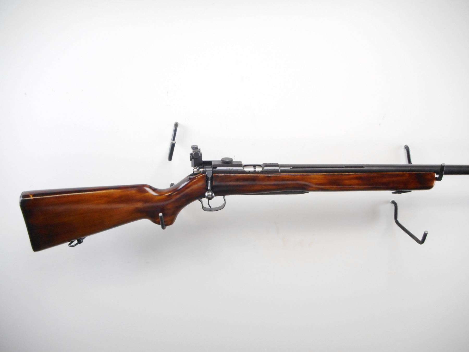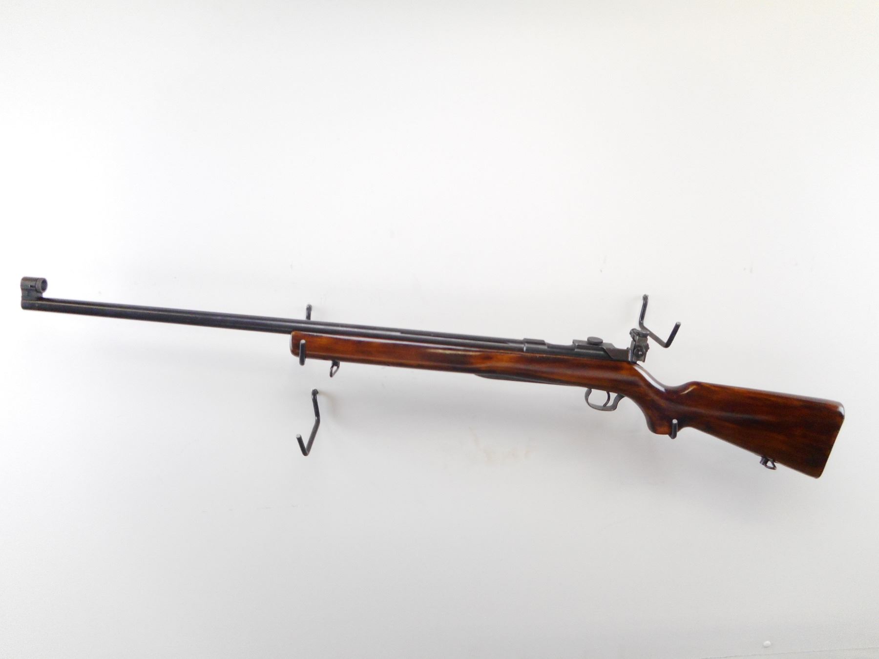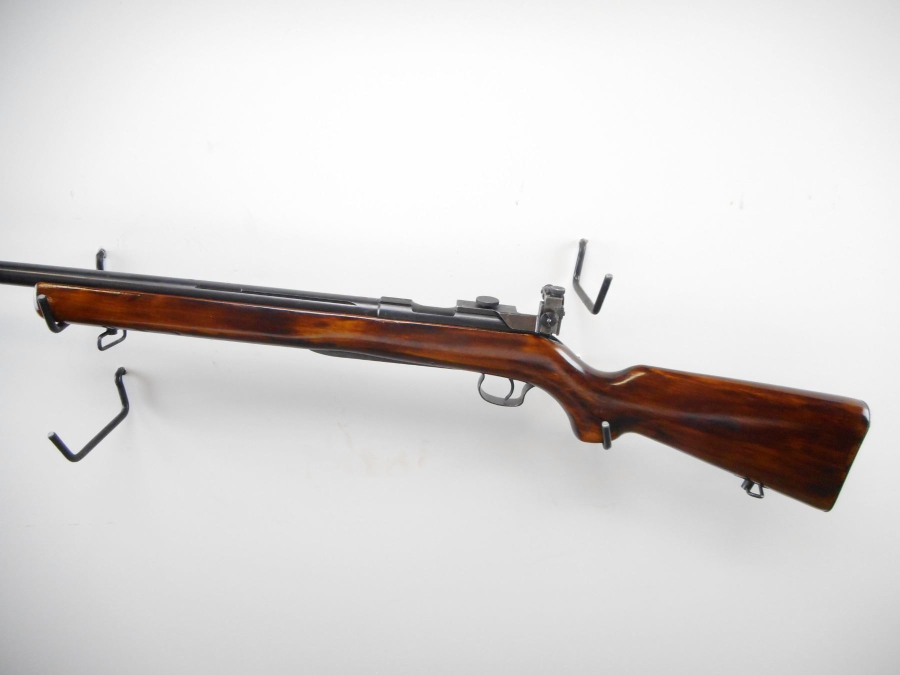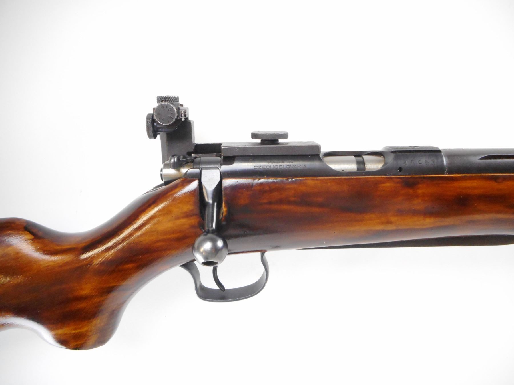CZ BRNO , MODEL: 4 , CALIBER: 22 LR , BORE IS VERY GOOD. GLOBE FRONT SIGHT WITH INSERT. CZ PEEP SIGHT ON REAR RECEIVER GROOVE. FRONT HAS ONE HOLE DRILLED AND TAPPED. BARREL GROOVED FOR REAR SIGHT. DATED 1962. SMOOTH ONE PIECE WOOD STOCK. PISTOL GRIP. CHECKERED STEEL BUTT PLATE. SLING SWIVELS. HAND RAIL IN FRONT OF TRIGGER GUARD. BLUEING SHOWS HANDLING MARKS AND WEAR. STOCK SHOWS HANDLING MARKS AND WEAR. , ACTION: BOLT ACTION RIFLE , BARREL LENGTH: 27 1/2" , SERIAL # 40963 , CONDITION: 7/10 , CLASS: CANADIAN NON RESTRICTED CLASS