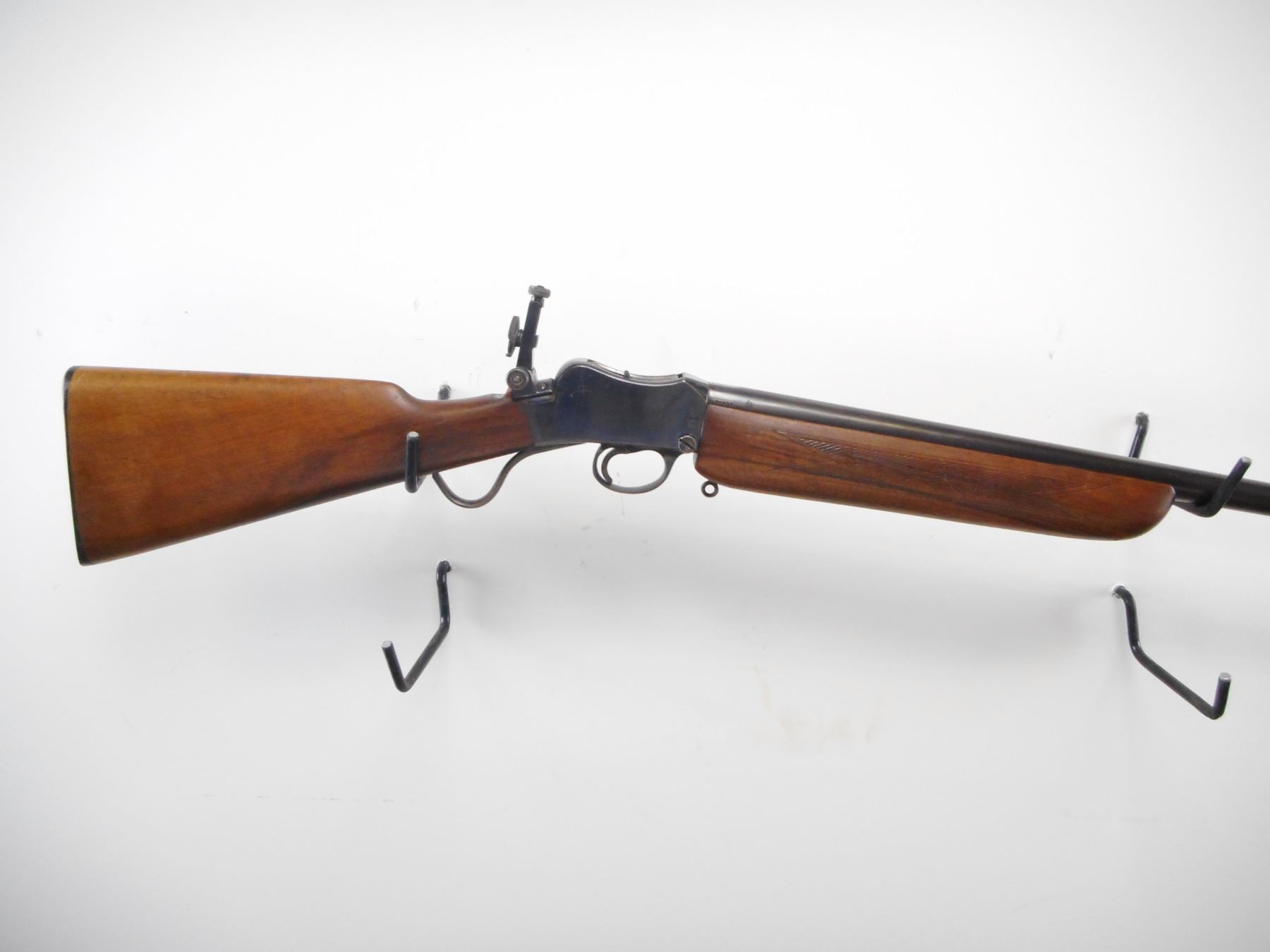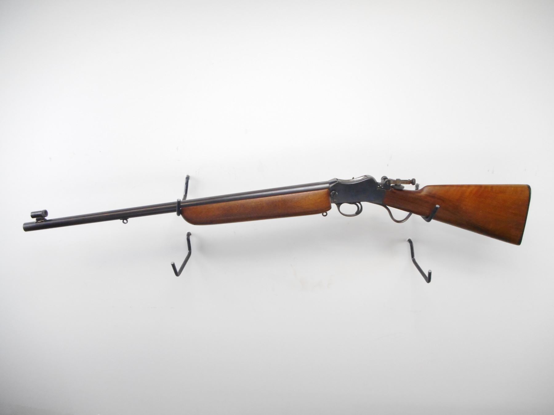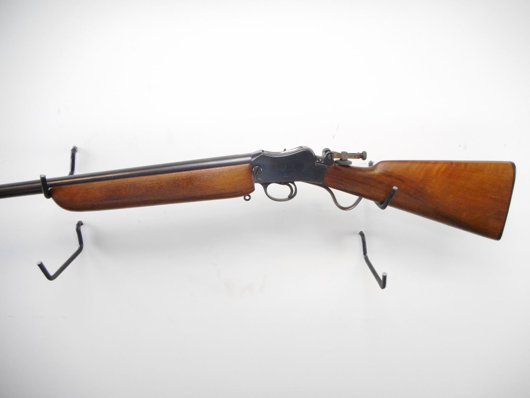 BSA MARTINI , MODEL: MARTINI CADET , CALIBER: 22 LR , BORE IS VERY GOOD. GLOBE FRONT SIGHT WITH INSERT. BSA FOLDING REAR PEEP SIGHT. MEDIUM WEIGHT BARREL. BLUED FINISH ON METAL PARTS. RECEIVER AND BARREL MARKED WITH C-BROAD ARROW. " CANADIAN MILITARY OWNERSHIP". TWO PIECE WOOD STOCKS. CHECKERED FOREND. STRAIGHT GRIP. CHECKERED BSA BUTT PLATE. SLING LOOPS. METAL SHOWS SOME HANDLING MARKS AND WEAR. STOCK SHOWS DINGS SCRATCHES AND WEAR. , ACTION: HINGE SINGLE SHOT , BARREL LENGTH: 25" , SERIAL # 37816 , CONDITION: 7/10 , CLASS: CANADIAN NON RESTRICTED CLASS