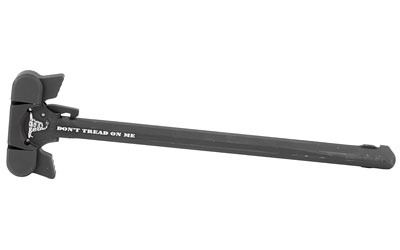 This ambidextrous charging handle features an oversized serrated handle to make gripping a breeze. It has been billet machined to exacting standards in the USA from American 7075 billet aluminum and finished with durable black Type III hardcoat anodizing. It is equipped with oversized tactical latches on both sides to ensure a positive engagement whether you are palming or finger/thumb charging the weapon.