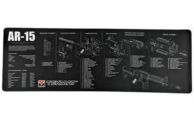 The TekMat has a soft thermoplastic fiber surface that will protect your firearm and won't stain from grease and oil. The neoprene rubber substrate gives TekMat the padding you need to keep your gun, as well as your kitchen table, safe from dings and scratches. And to take it one step further, TekMat was designed with an exploded parts diagram of your firearm so you could take the gun apart to clean it, as well as put it back together without ever having to try and find the owner's manual. TekMat's use a dye-sublimation printing process which embeds the ink into the surface material so you don't have to worry about the printing coming off the mat.