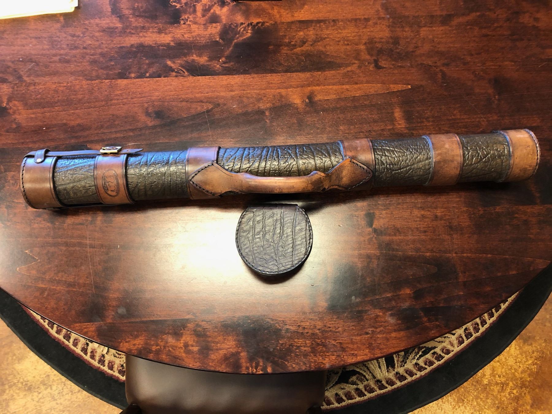 DONATION: Beautiful Cape Buffalo Hide fly rod and reel case, what a great case to have on your next fly fishing experience, sure to be a conversation piece.
