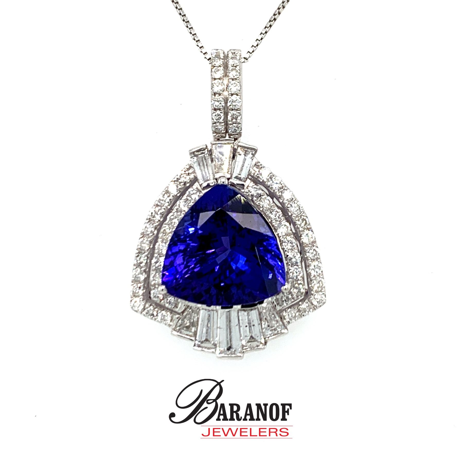 DONATION: Natural Tanzanite and diamond pendant set in 14 karat white gold, with diamonds. This Tanzanite is blue violet vivid in color and is 8.50 carats with 2.10 carats of diamonds which are F in color and Vs1 in clarity.