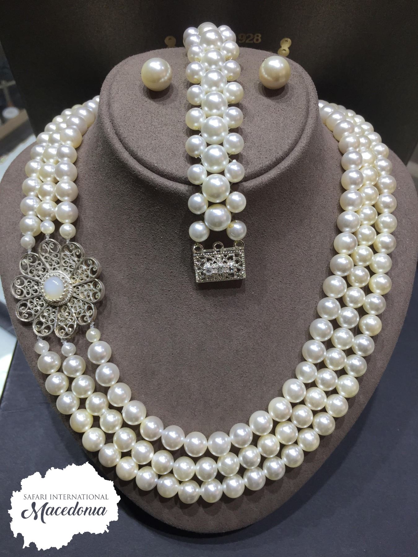 DONATION: Orhid Pearl Necklace, earrings and a bracelet with a famous Macedonian watermark, remarkable, and handmade. The Queen, Sophia Lauren & Catherine Deneuve are some of the many that own the Orhid Pearl. Lake Orhid, where the pearl comes from, straddles the mountainous border of Macedonia. It is one of Europe’s deepest and oldest lakes and it was declared a World Heritage Site by UNESCO in 1979.