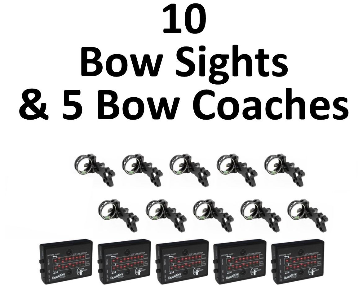 10 x ECO 5 Pin Bow Sights, 5 x Bow Coachs
