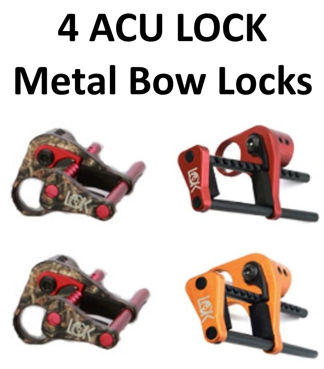 4 x ACU LOCK Metal Bow Locks, 2-Lost Camo, 1-Red, 1-Orange