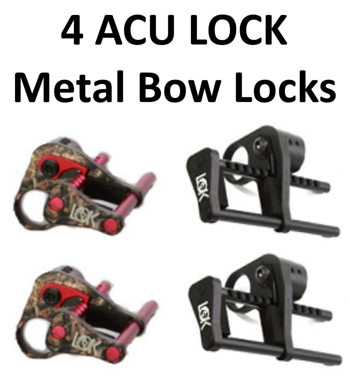 4 x ACU LOCK Metal Bow Locks, 2-Lost Camo, 2-Black