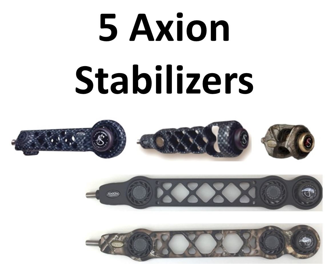 5 x Axion Stabilizers, 6" Triad Lite Grid Tact, Matrix Grid 6" Tact, Silencer 2" AP Camo, GLZ3 3" Tact, GLZ 11" 3D Hunter LC AP