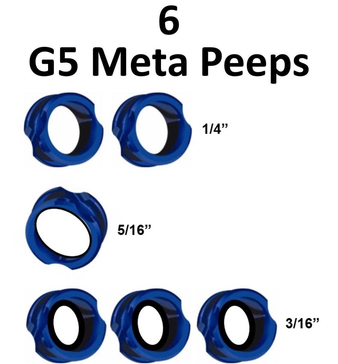 6 x G5 Meta Peeps, 2-Large Hunter 1/4, 1-Magnum Hunter Peep 5/16, 3-Hunter 3/16