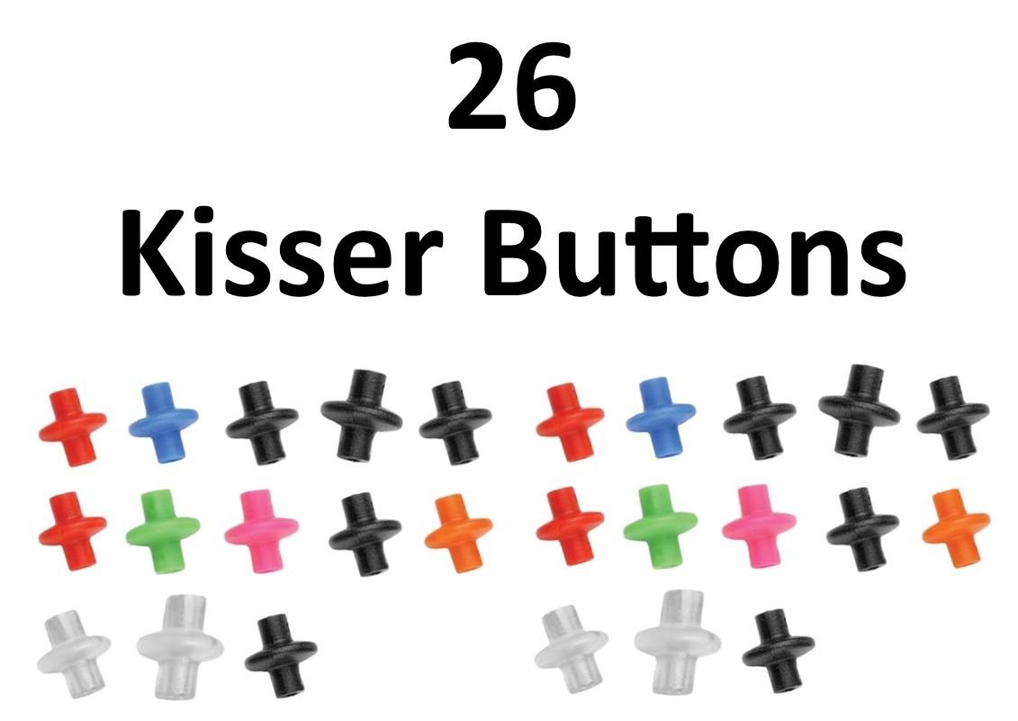 26 x Kisser Buttons, 6 x Saunders, 2-16 -18 Standard, 2-12-14 Standard Kiss X, 2-Slotted Kiss X 12-14, 14 x Pine Ridge Slotted, 2-Red, 2-Blue, 2-Black XL, 2-Black, 2-Orange, 2-Clear, 2-Clear XL, 6 x Pine Ridge Slide On, 2-Red, 2-Green, 2-Pink