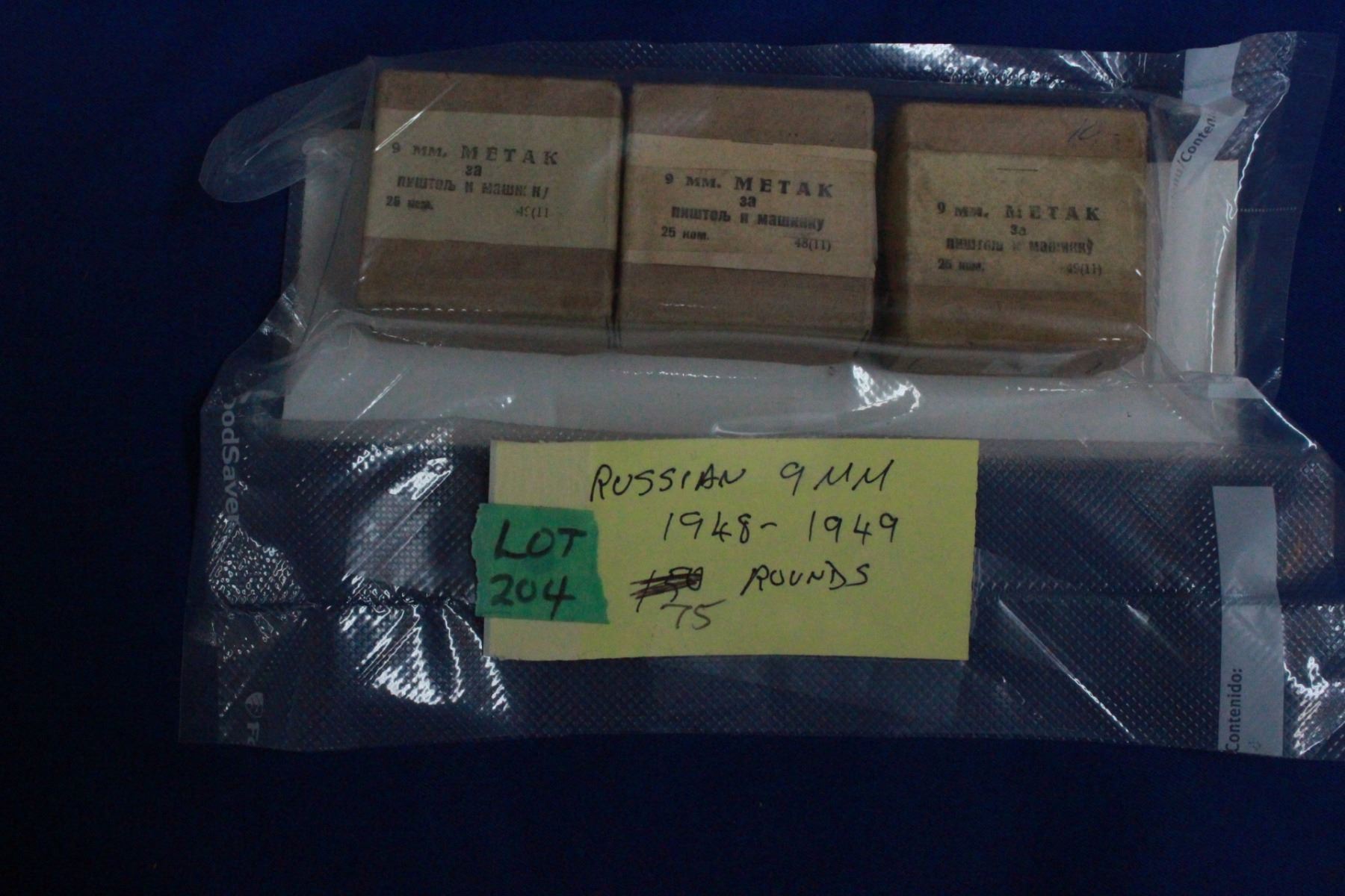 Lot 204 Live Ammunition - 9mm Metal 1948-1949 - 75 rounds