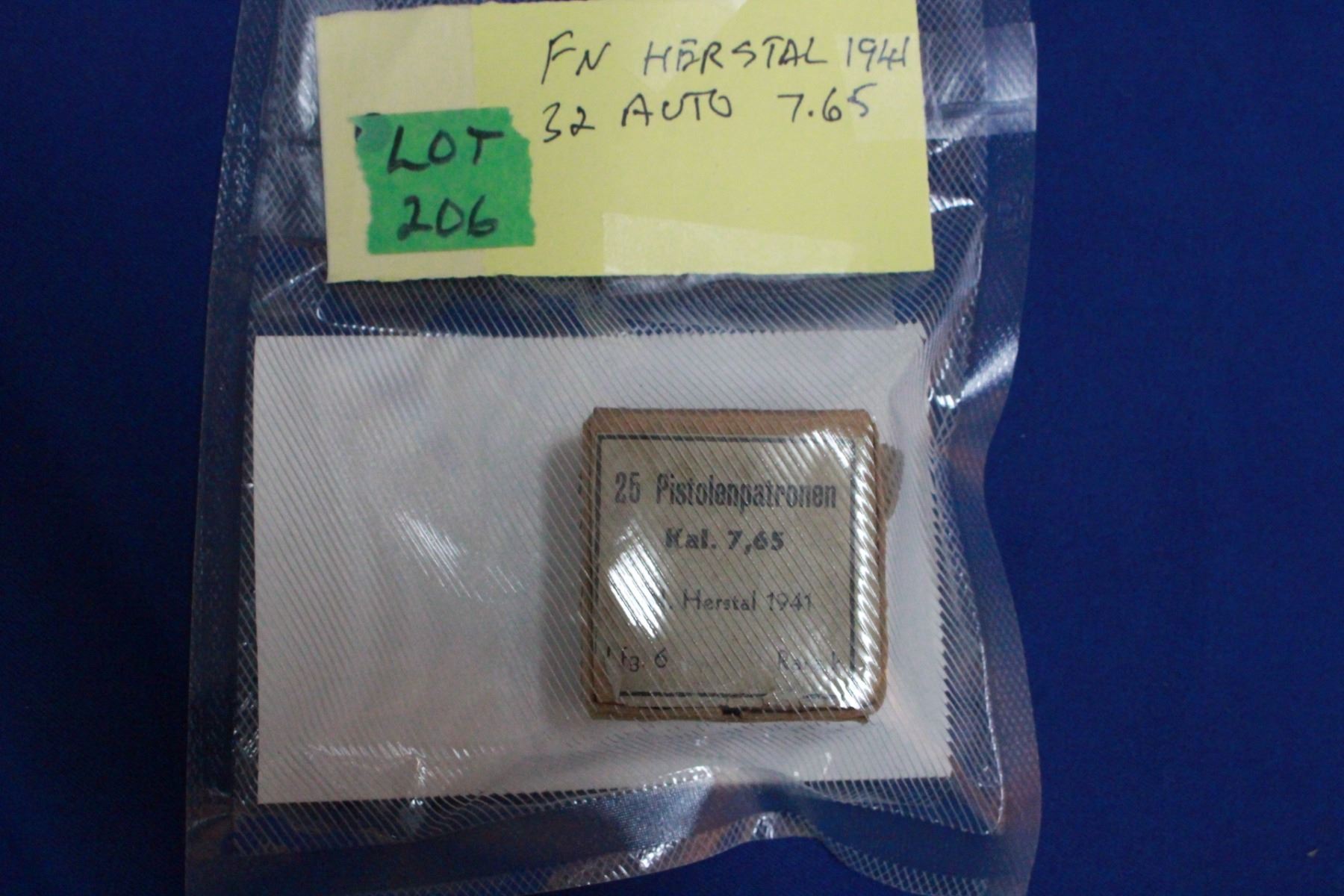 Lot 206 Live Ammunition - 7.65 (32 Auto) by FN Herstal 1941 - 25 rounds