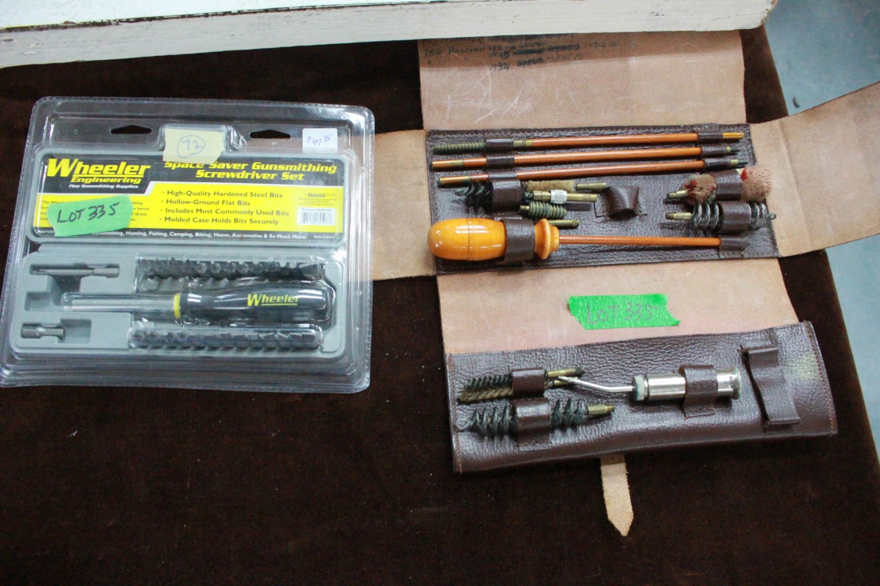Lot 335 Gun Cleaning Kit in a Leather Folder & a 'New' Wheeler Engineering Gunsmith Screwdriver Set