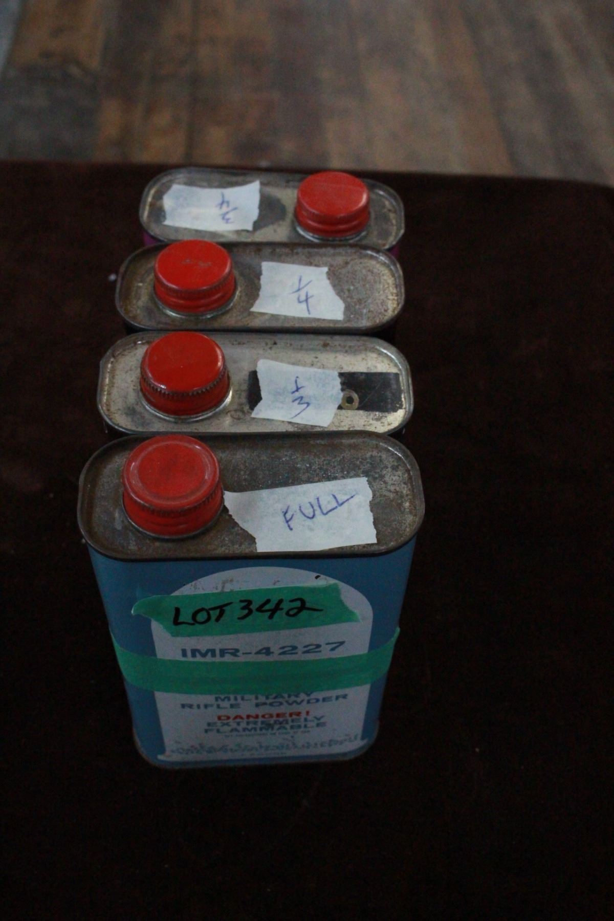 Lot 342 IMR Smokeless Powder - 3 - 16 oz. Part Containers & 1 Full Container