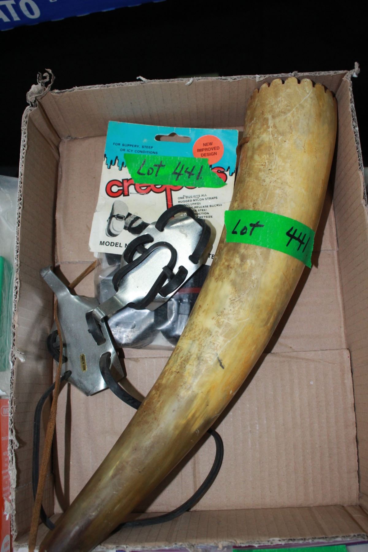 Lot 441 Powder Horn & 2 Pairs of Ice Creepers