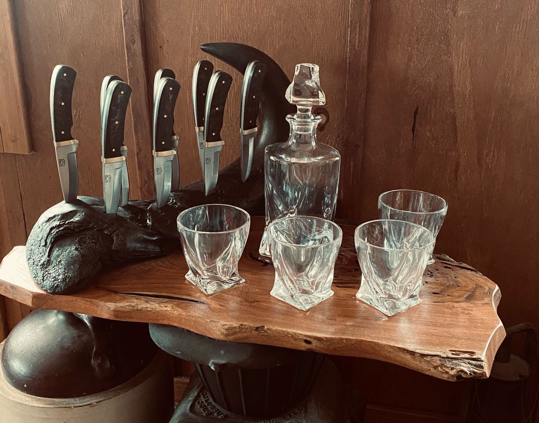 Lot 6 Cape Buffalo Custom Knife and Decanter set - Hill Country Texas Custom Knives