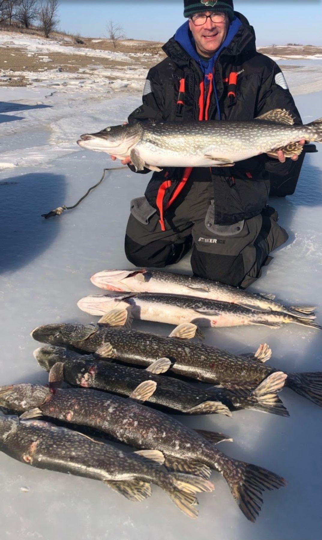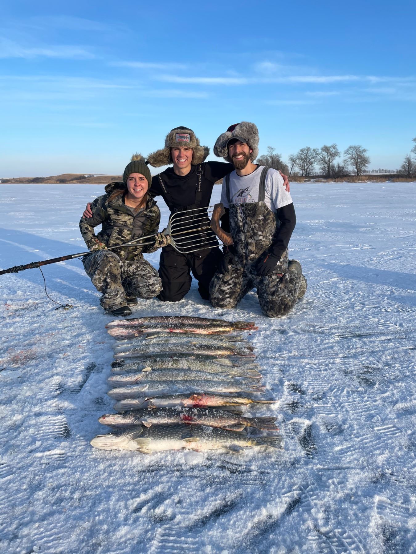 Start off 2021 with an exciting new adventure! Up until mid-March we are offering a combination of pike spearing and ice fishing on the frozen lakes of northern North Dakota. This is a 3 day/3night all-inclusive adventure for 2 people. Lodging will be in a lake cabin on the north side of Lake Sakakawea. All meals, lodging, cold beer, and guides are included. You can spear up to 5 northern pike a day per angler! Our weapon of choice is a trident spear. After spearing these prehistoric cold water predators, we can try our hand at ice fishing for walleye. Your evenings will be spent cozied up by the fire in your warm winter cabin. Call us today to book your adventure. This trip can be taken in 2021 or 2022 and can be upgraded to include additional fisherman for $1250 each.