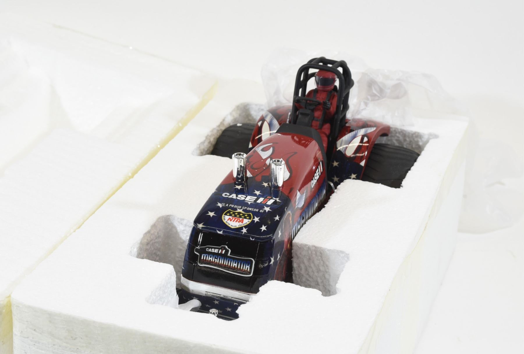 Seal broken. 2014 NTPA Grand National Circuit Presented by CASE IH. 1/16 scale. By Speccast Collectibles number ZJD1760. Box has some damage, but interior packaging is good.