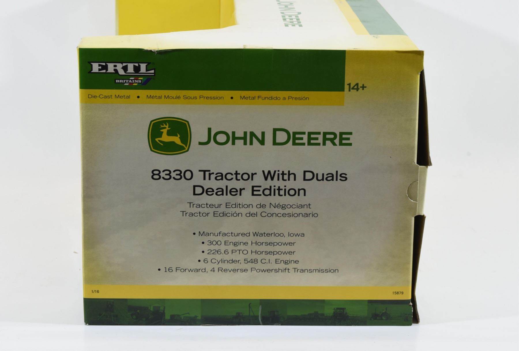 Sealed in box 1:16 scale. Dealer edition John Deere 8330 tractor with duals by Ertl number 15879.