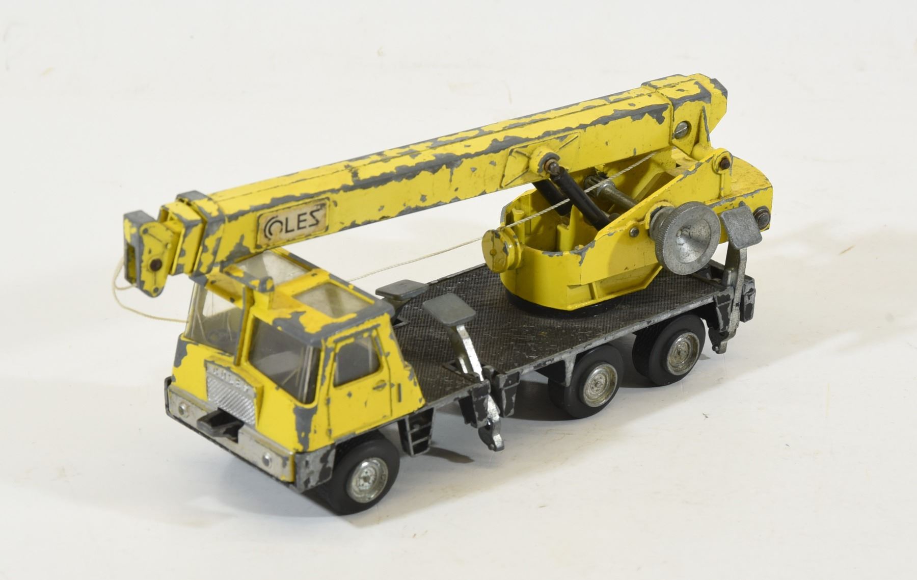 1) Dinky toys Coles Hydra truck 150T. Paint is chipping. Approximately 8" long. The crane works. 2) No. 5 Foden dump truck Match box series king size. The paint is rubbed off in spots.