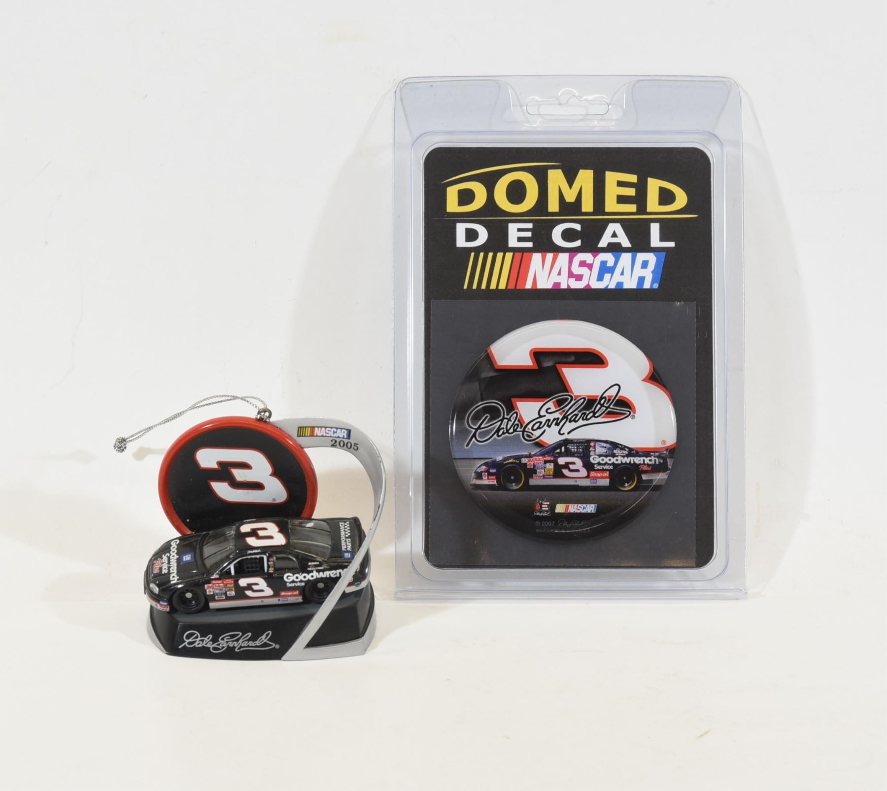 Dale Earnhardt No.3 domed NASCAR decal. Dale Earnhardt No.3 Christmas ornament.