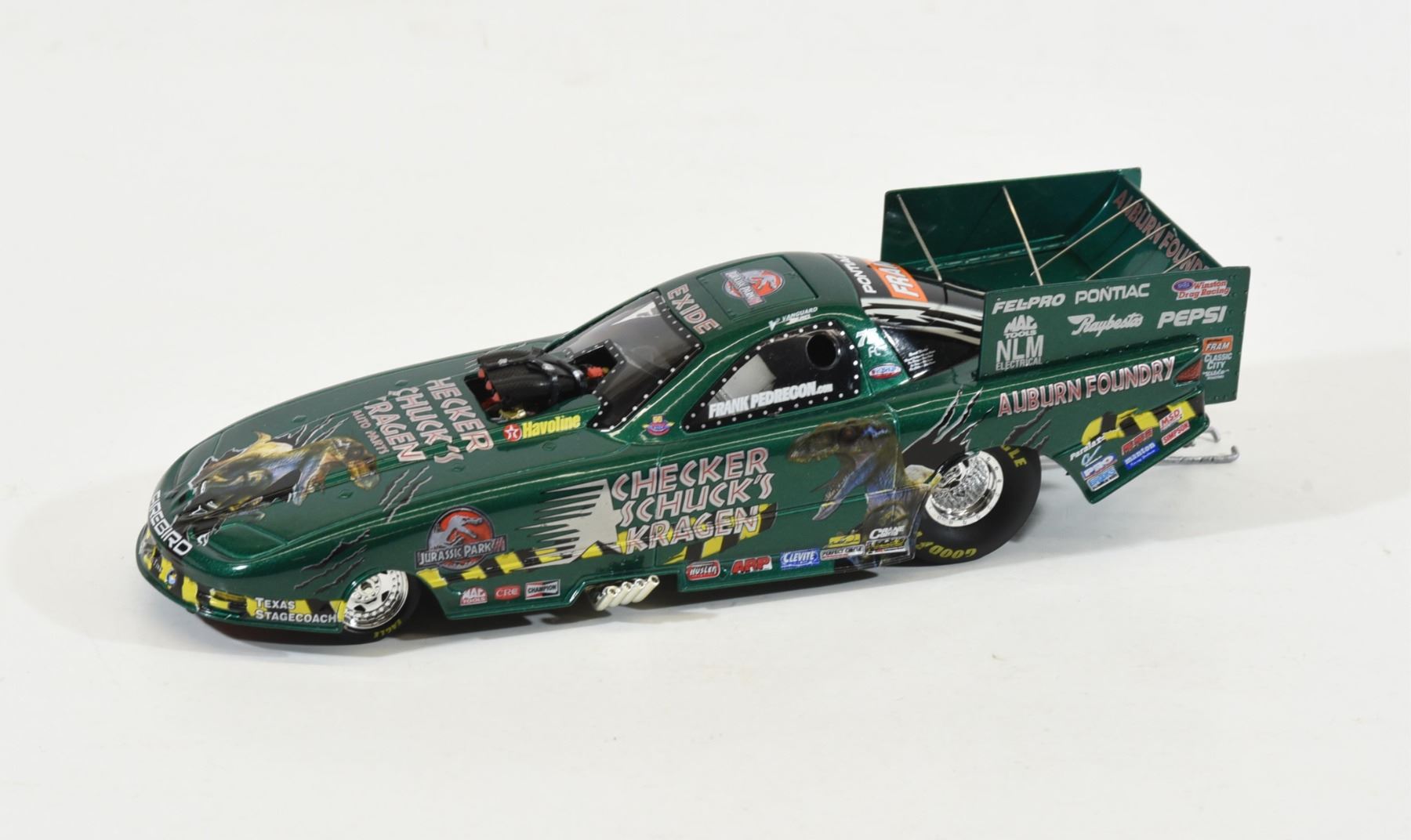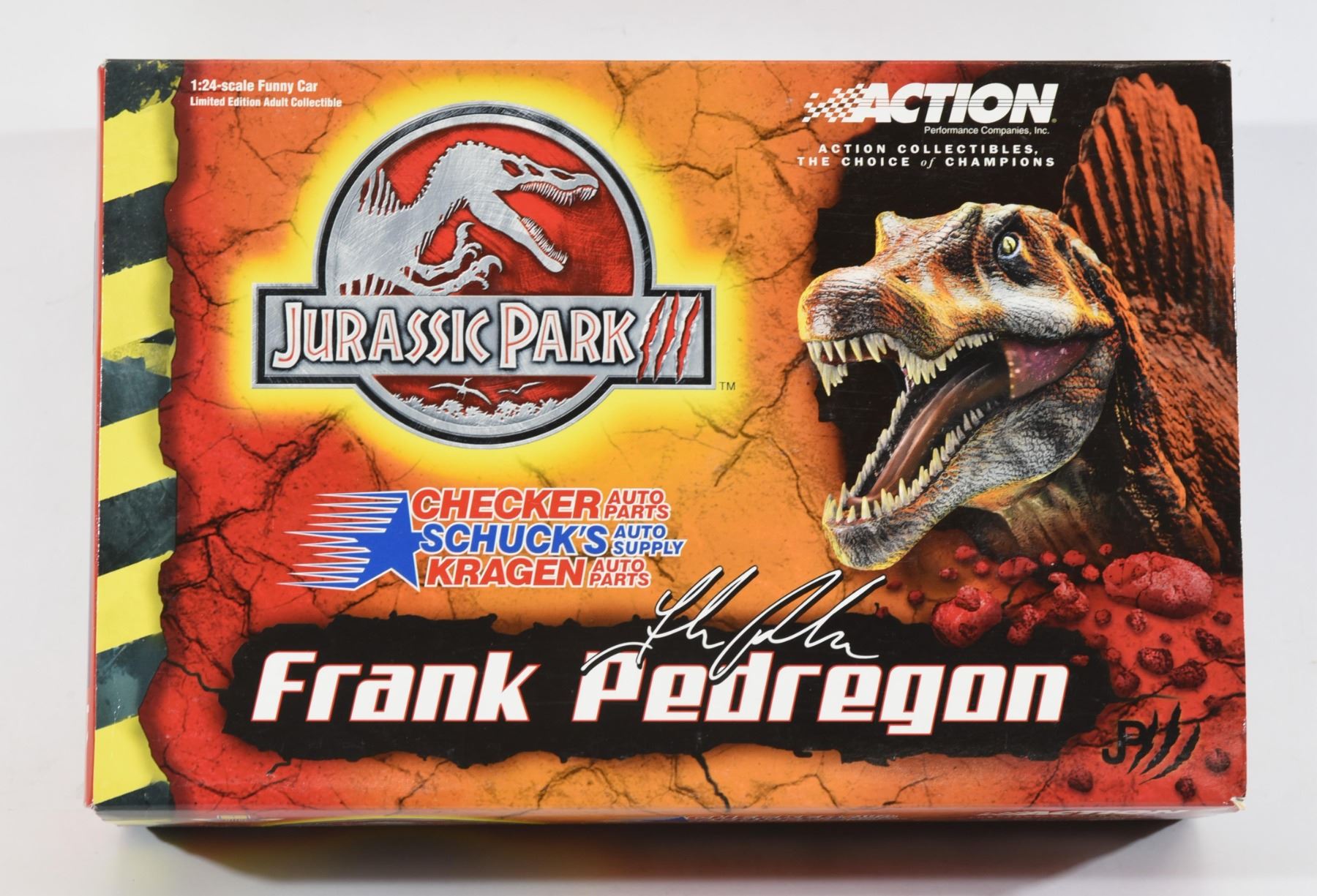 1:24 scale Action Racing Collectibles 2001 Frank Pedregon Jurrasic Park III Top Fuel Funny Car. Limited edition in box with outer sleeve.