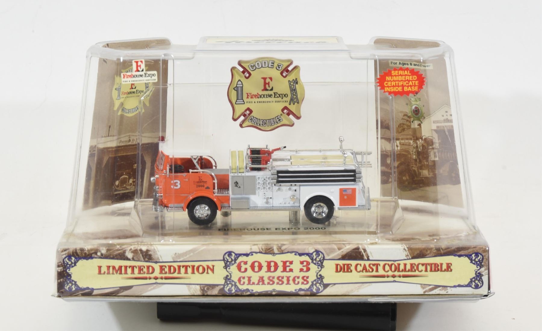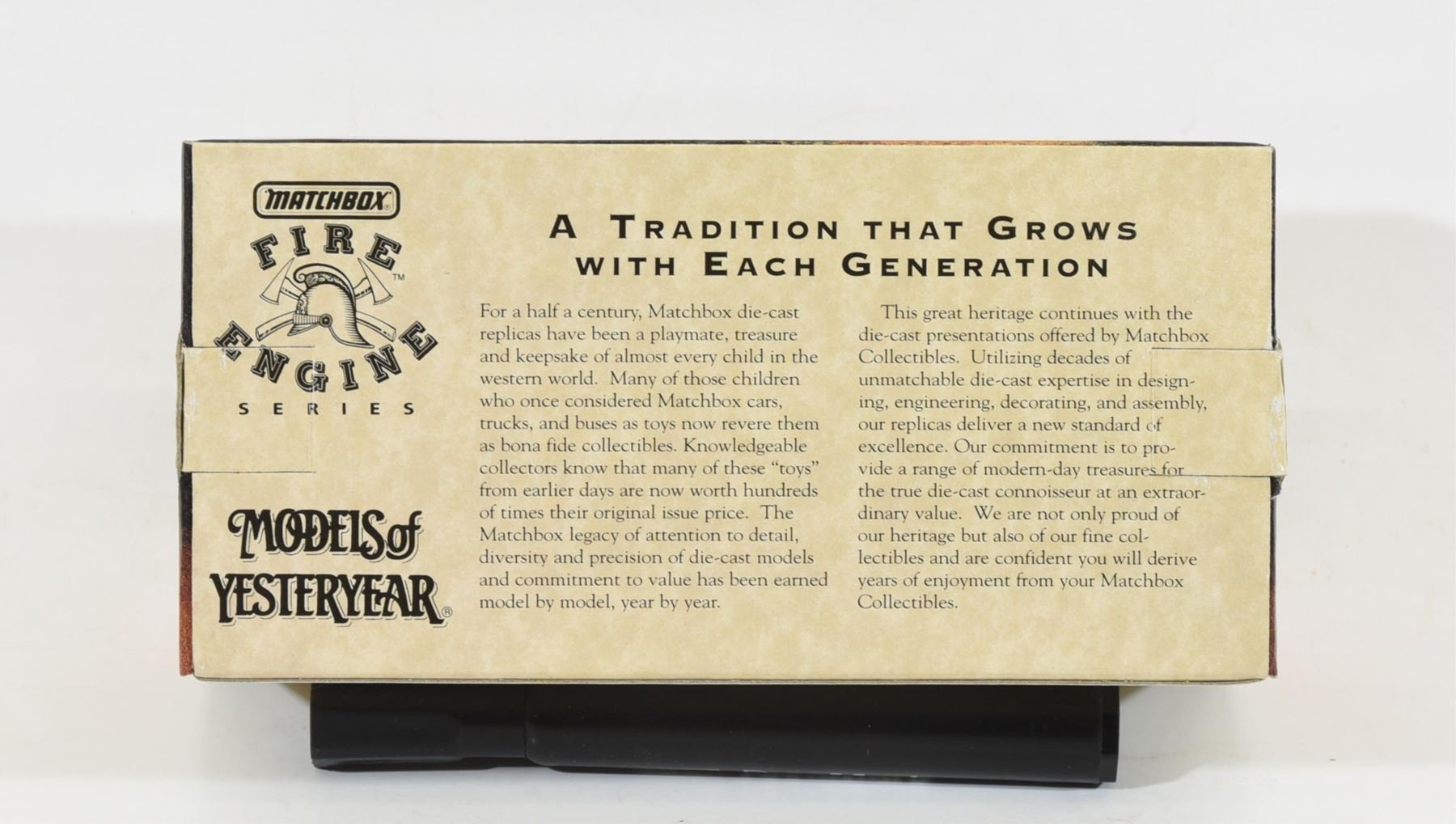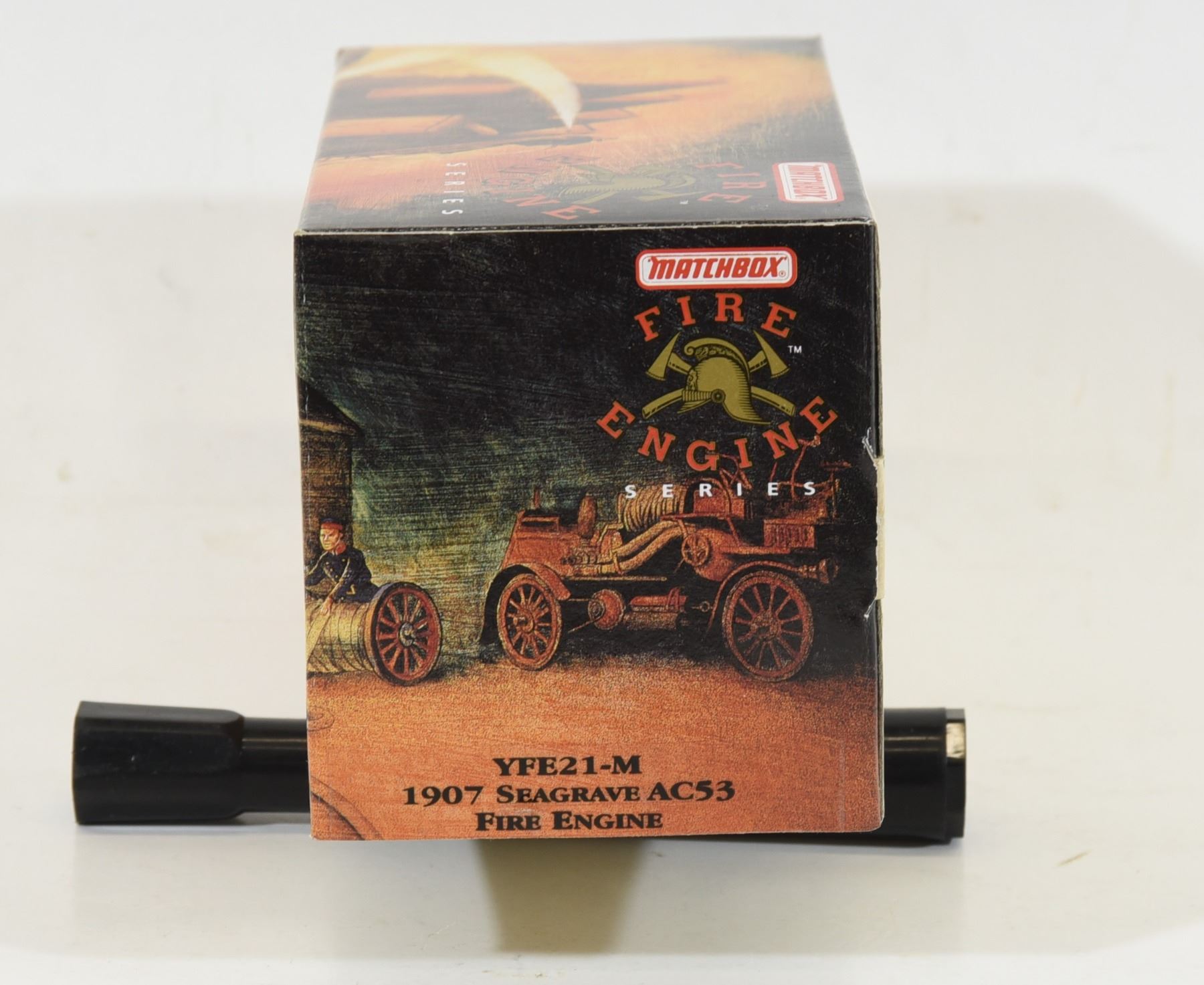 Code 3 Classics 1:64 scale Crown Pumper in box with sleeve. Matchbox Fire Engine Series 1907 Seagrave AC53 in box.