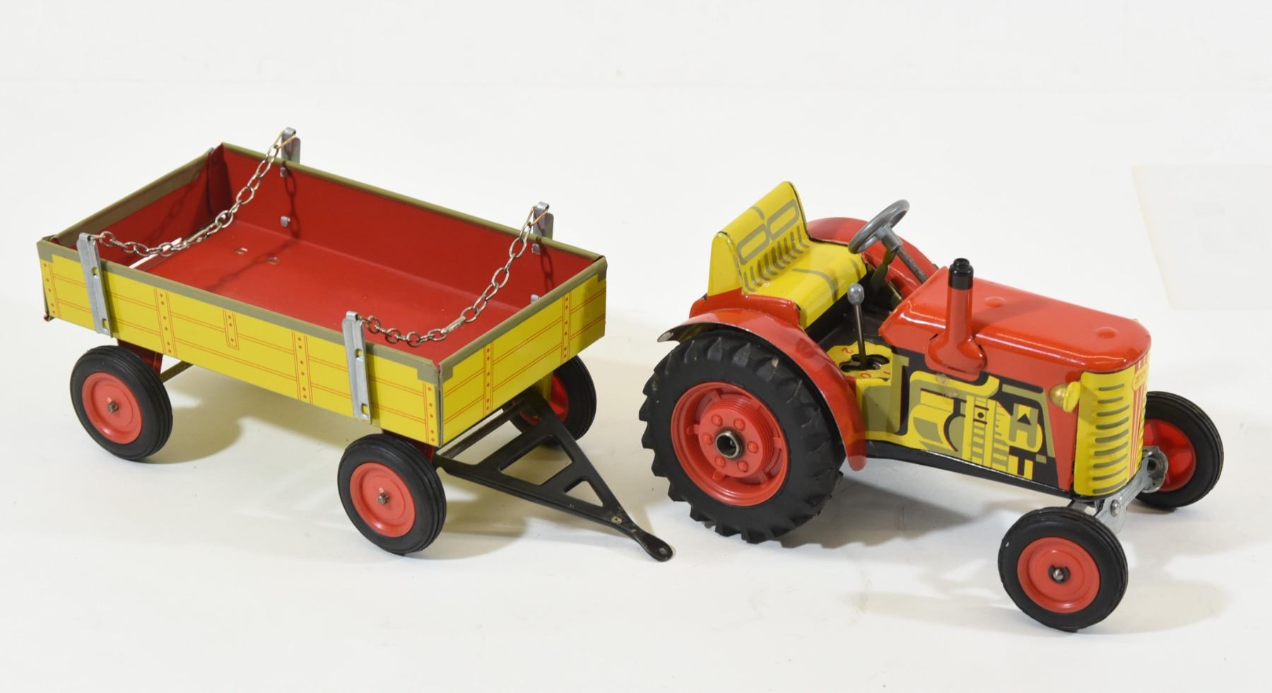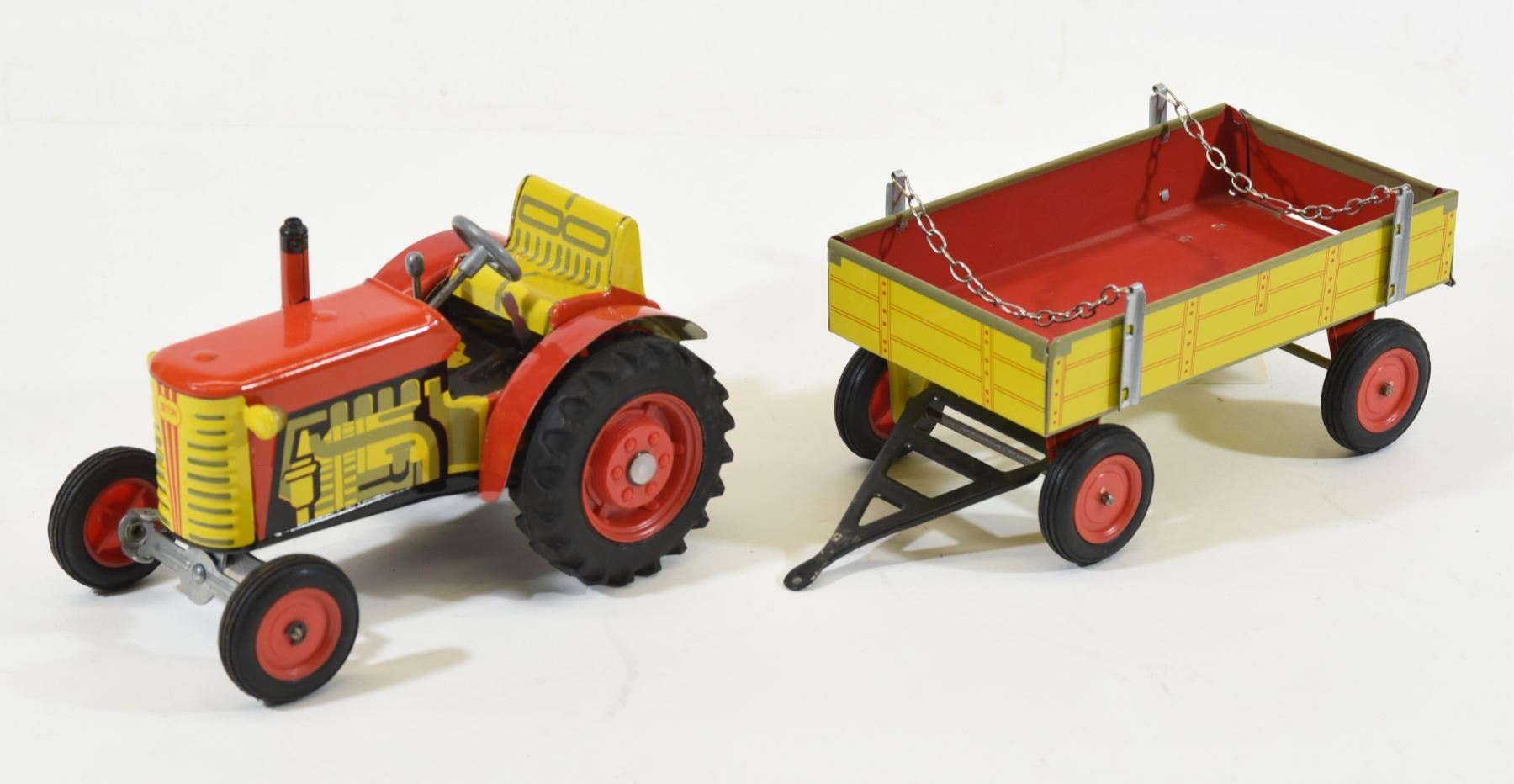 Lot 3206 Vintage Zetor Tin Litho Wind-Up Tractor & Trailer