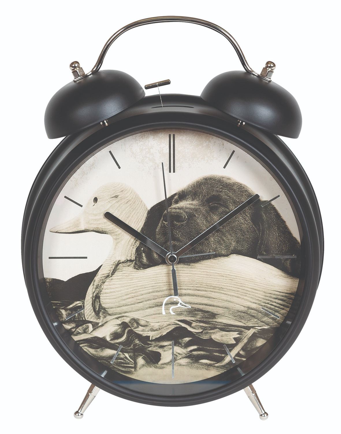 This vintage style alarm clock is perfect for any child’s room. The round face highlights Dreams of Perfection artwork by Stephany Chavez and features a white DU logo and hour markers. The 12” clock includes silent sweeping movement and a twin bell alarm.