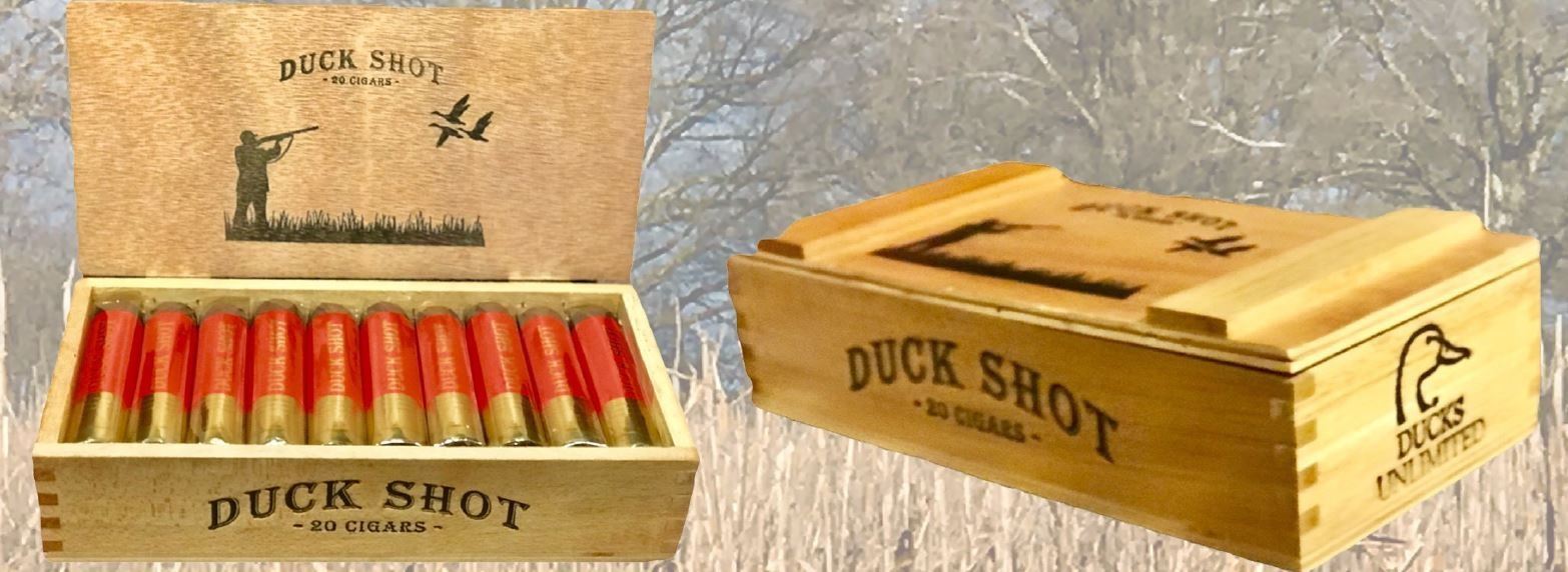 The cigar resembles a 3.5 inch shotgun shell and comes in a collectible cigar ammo box. The Duck Shot is rolled in Nicaragua and features a stunning, oily Habano seed wrapper grown in Ecuador. Its fillers and binder hail from three prestigious Nicaraguan growing regions: Esteli, Condega and Jalapa. The tobacco combination produces an earthy and woody smoke full of rich hickory and cedary notes leading to a beautiful white ash.