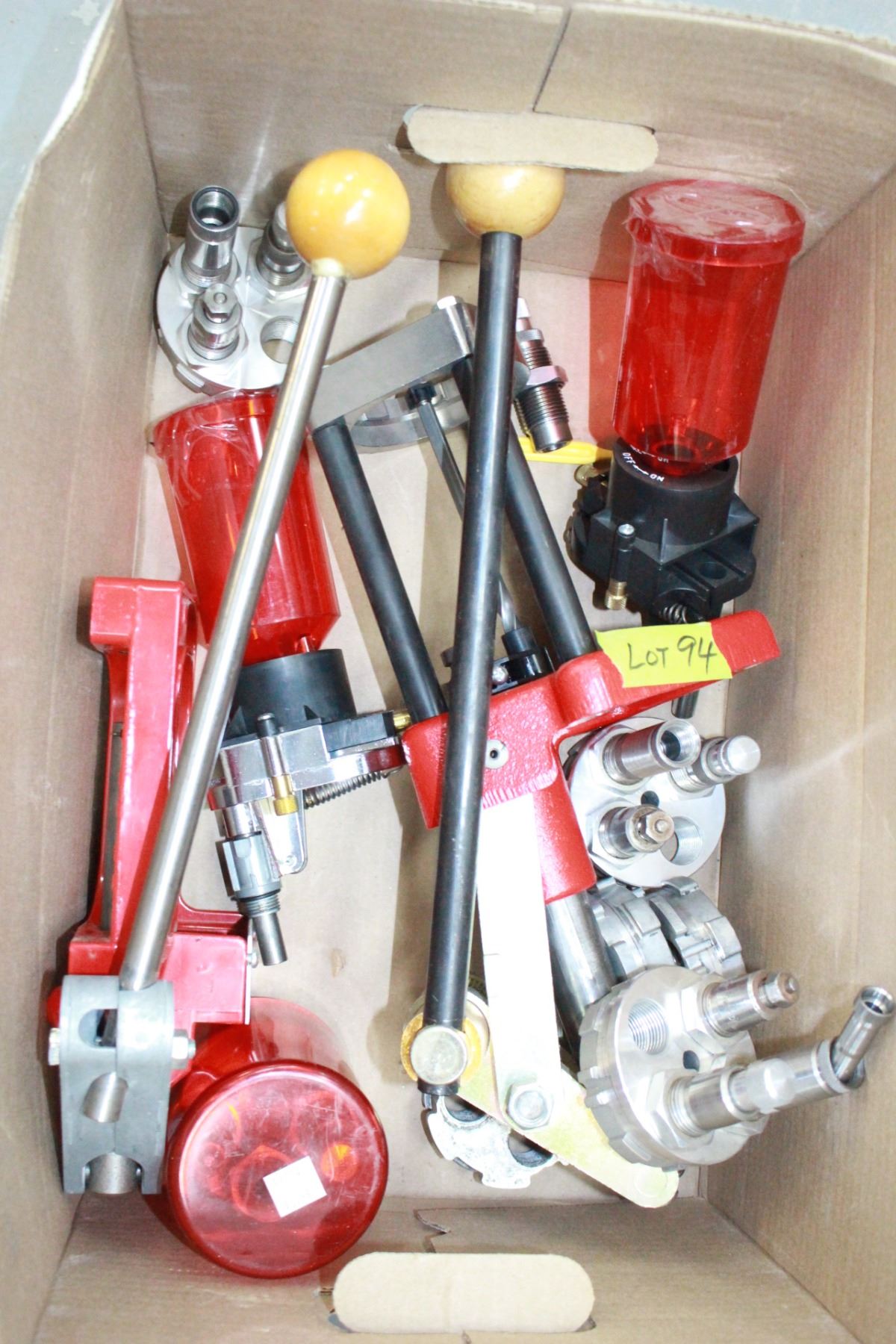 Lot 94 Lee Loader 2 Powder Dispensers, 3 Quick Change Turrets, 38 Dies in a Turret, 45ACP Dies in a Turret,