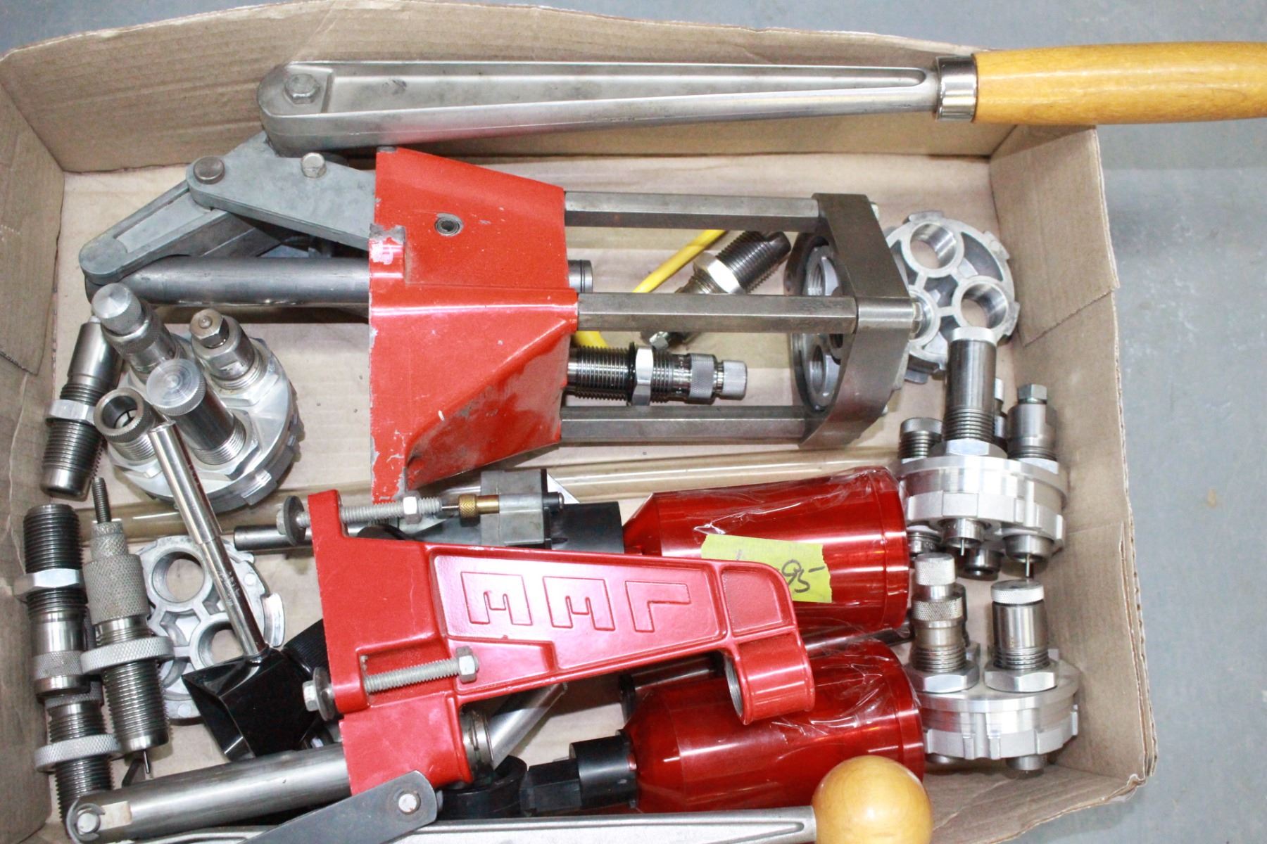 Lee Loader 2 Powder Dispensers, 3 Quick Change Turrets, 308 Dies in a Turret, 223 Dies in a Turret, 6.5 Creedmore Dies in a Turret, Bonus 223 & 308 Spare Dies