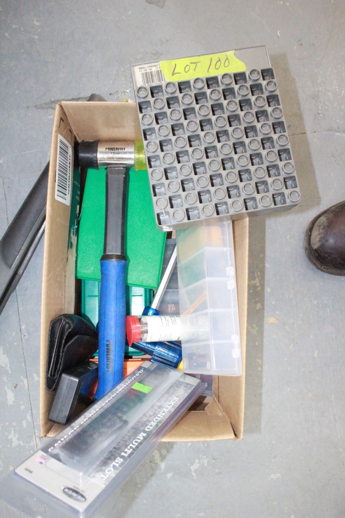 Lot 100 Box with Loading Items, Lyman Outside Neck Trimmer, Case Holders, RCBS Pocket Trimmer, Case Of Misc