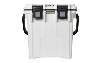 Pelican, Elite Cooler, White/Gray, 20 Quarts, Molded-In Tie Downs, Integrated Cup Holders