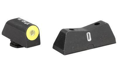 XS DXT2 Big Dot Night Sights offer the best front sight visibility in all lighting conditions. DXT2 Big Dot sights drive focus to the front sight using a high-contrast front and a V-notch rear for an unobstructed view of the front sight. DXT2 Big Dot front sights use a patent pending glow dot that absorbs light and glows in low light levels before it is dark enough to see the tritium. Optic Yellow is the best option for low light and has the brightest glow intensity. Primarily based on the white light spectrum" optic yellow is very reflective and will excite the photoluminescent properties of the dot faster than any other color. The increased surface area of the convex dot increases light absorption" intensifying the charge of the glow properties of the dot. The dot-the "i" sight picture" with a tritium dot in the front sight and a tritium bar in the rear" prevents confusing the front and rear sight in high-stress situations. The wide field of view increases visibility of the front sight and of the threat downrange.