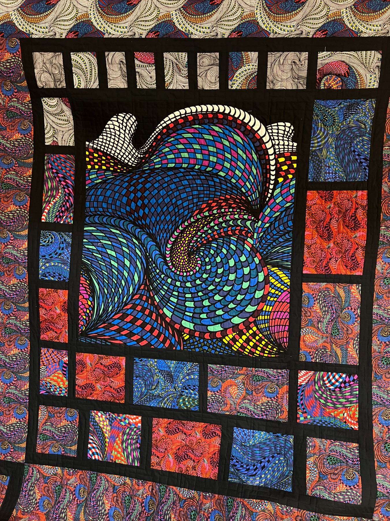 This colorful quilt was handmade by world renowned quilter, Sue Vertrees. Quilt size is 101 inches by 102 inches and fits a king size bed. We thank Sue Vertrees for this donation. VALUE: $1,500.00