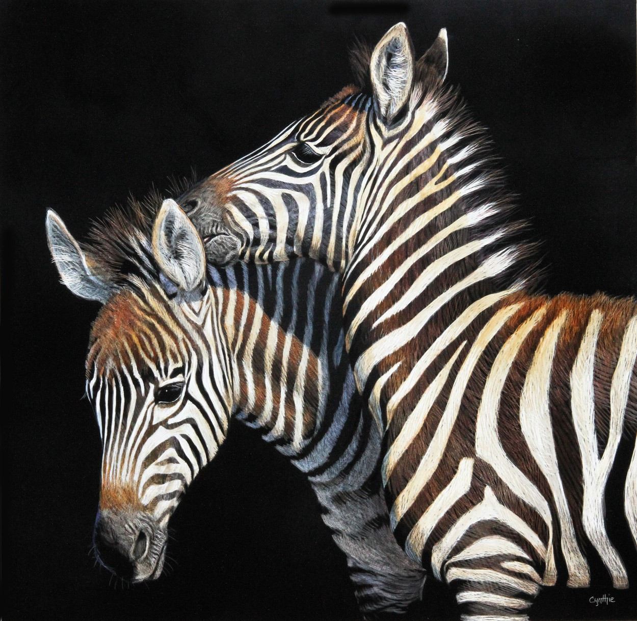 2015 SCI National Conservation Artist of the Year, Cynthie Fisher has donated an original scratchboard of Burchell Zebra foals. Titled “Best Buds”. Cynthie Fisher, a resident of Hamilton, Montana, has been a professional wildlife artist for 35 years. She’s accrued quite a list of national art award including 17 state duck stamps, and numerous accolades in wildlife art and conservation circles. Cynthie displays her artwork at several national conservation shows each spring, and has travelled to Africa 19 times, where she adds to her collection of photos as well as trophies in her trophy room. Cynthie’s artistic passion is purely wildlife, all species worldwide, as well as the local favorites here in Montana. She paints in oil, acrylic and scratchboard, and makes glass mosaics and mixed media sculpture. She also does bronze sculpture of many unusual species, making good use of her knowledge of anatomy and behavior. Don’t miss this chance to own a Cynthie Fisher original! www.fisherart.com This is a 100% donation. We thank Cynthie Fisher for her donation. Value - $2,500