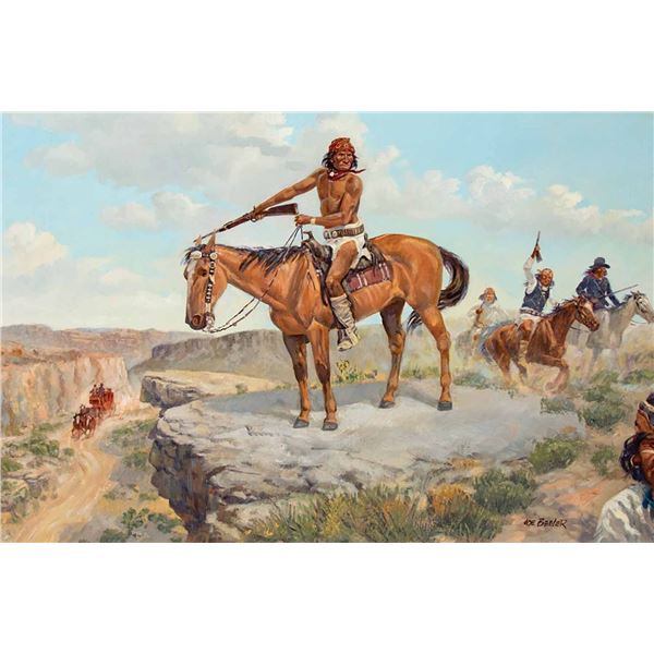 Artist: Joe Beeler. Artist Birth/Death: 1931-2006. Signed lower right. Shipping Dimensions: 24 x 36 inches. Shipping: 31x43. Oil on canvas
