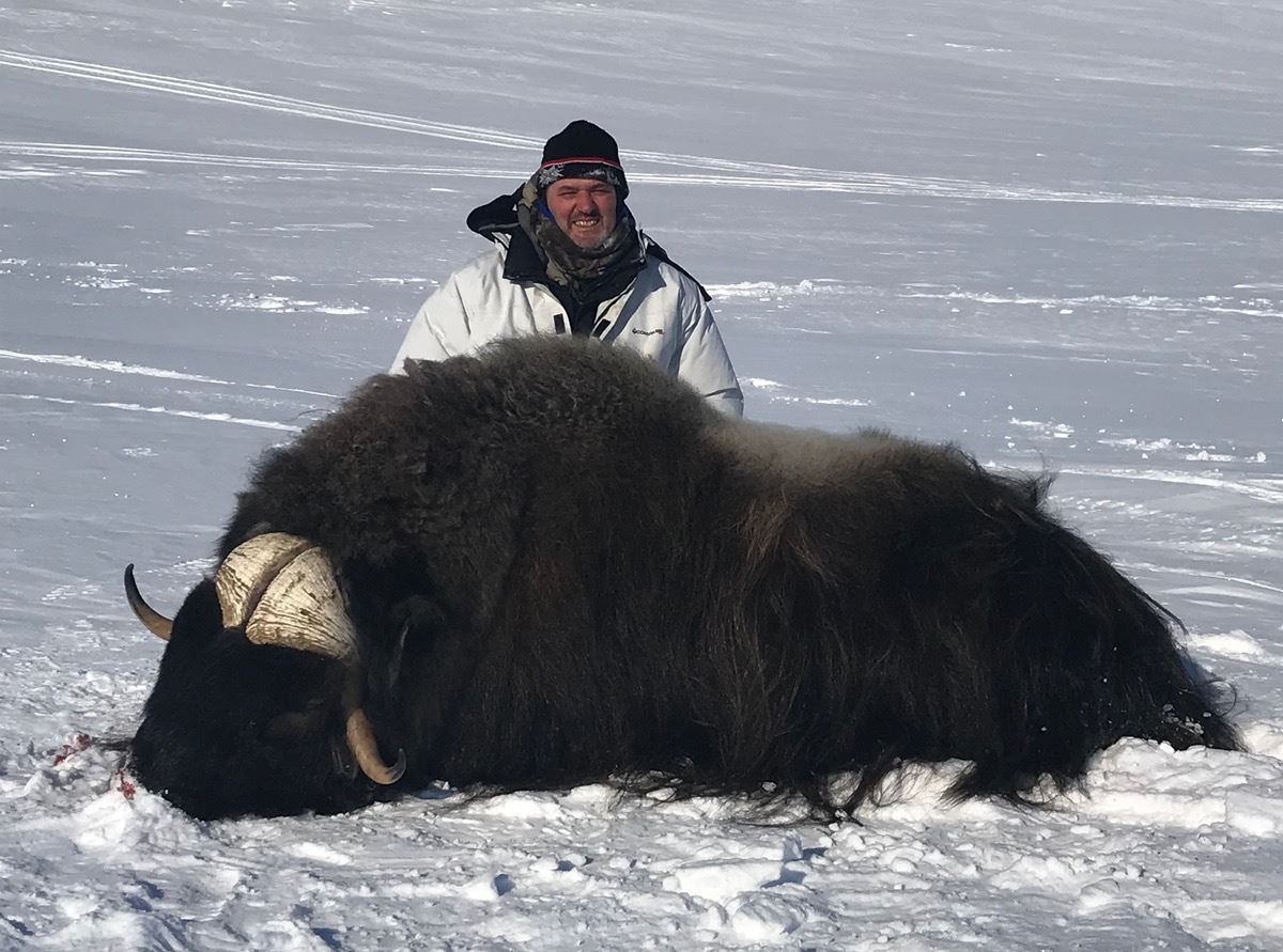 This is a 6-day Musk Ox hunt for one hunter with near 100% success on mature bulls. You will be guided by Inuit guides by snowmobile and Qamutik sleds out on the land for an epic hunting experience! The camps are basic heated wood cabins and the spike camps are insulated heated wall tents. This hunt will be done by traveling on snowmobile looking for small groups of Musk Ox. Once the heard is located, the final stalk is done by foot.