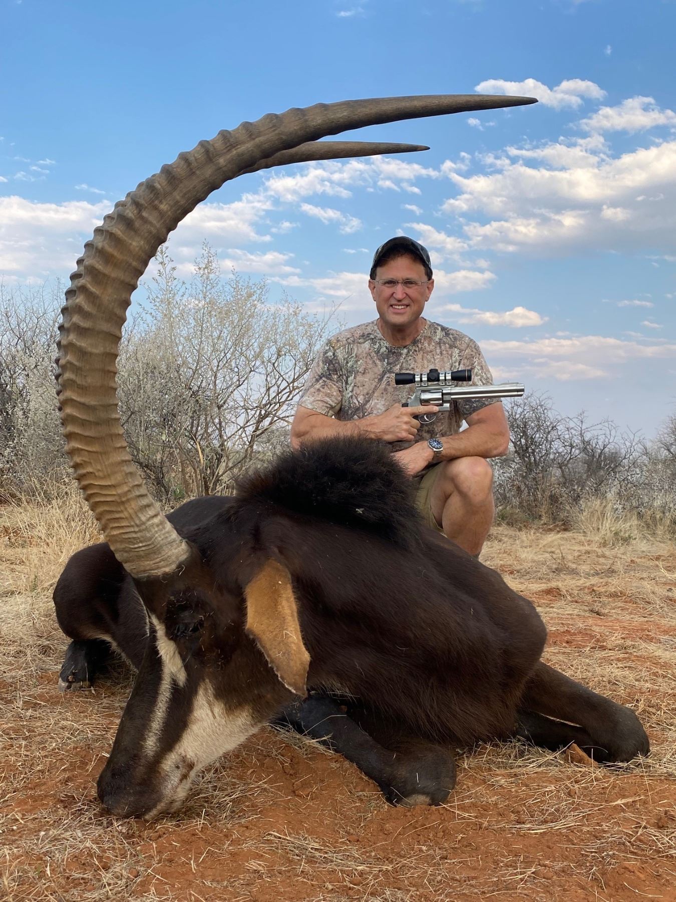10-day Hunt (8 full days hunting) in Kimberly, South Africa for 1 hunter that includes a Sable, Gemsbok and Impala! We pride ourselves on offering the genuine African safari where a hard day’s hunting filled with adrenaline and excitement is rewarded with a hot shower back at camp and a cold beer around the fire under star scattered skies, surrounded by the sounds of Africa whispering in your ears.