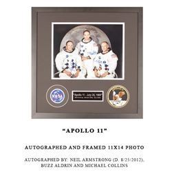 Framed 22”x22” Photo Autographed by Apollo 11 Crew Members Neil Armstrong, Buzz Aldrin and Michael Collins