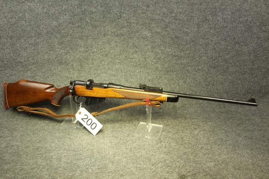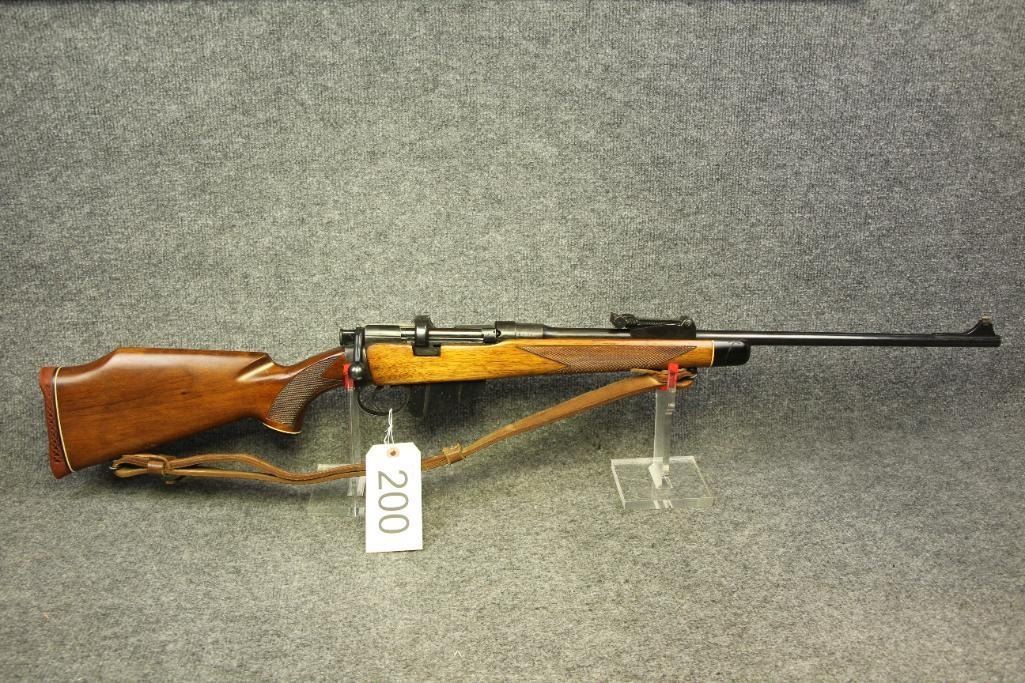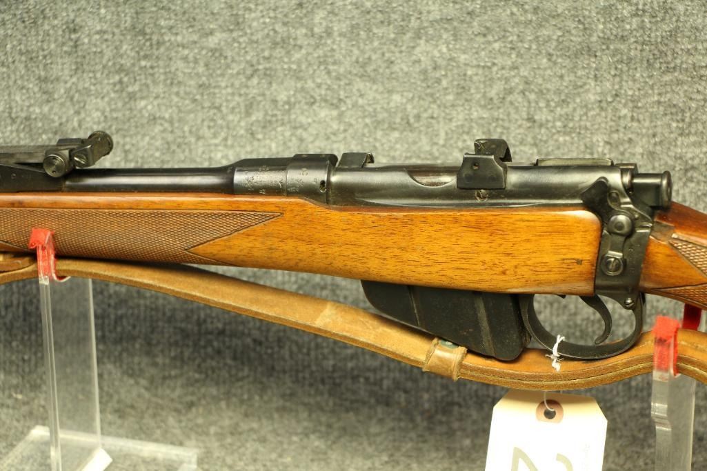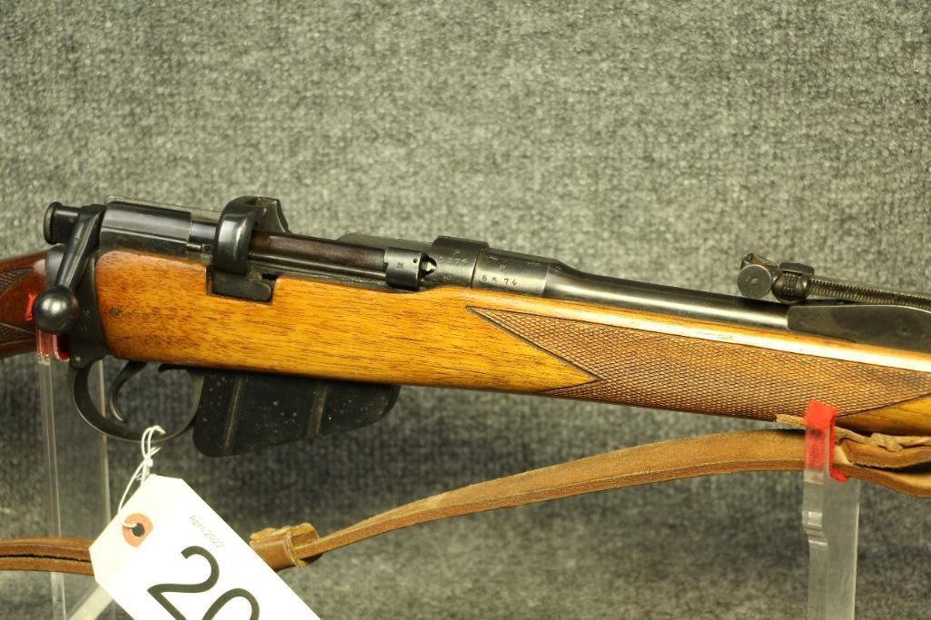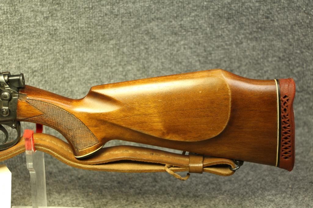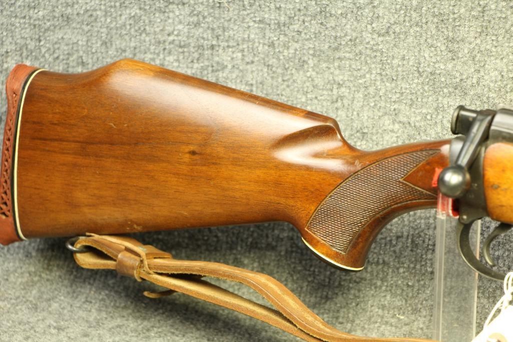 Nice finish. Reblued. All numbers match. Original sights with windage. Leather sling. Drilled and tapped for a scope. Light handling marks. Cut checkering.