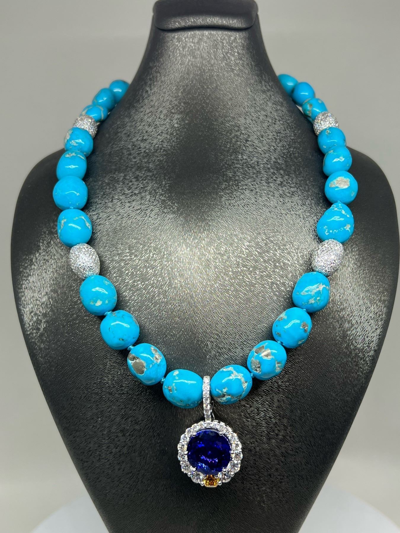 Lot 14 GUNDERSON'S: Turquoise and Diamond Necklace with Detachable Tanzanite and Yellow Diamond Pendant