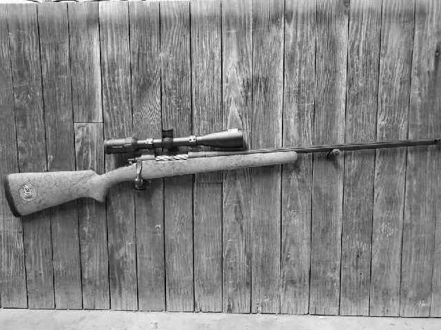 It has a Trigger Tech trigger set at 2 1/2 pounds with a bottom metal from Hawkins Precision. On top it has light weight Talley Rings topped off with a Z5 3.5 to 18 Swarovski Scope. Overall Rifle weight with scope is 7 1/2 pounds.