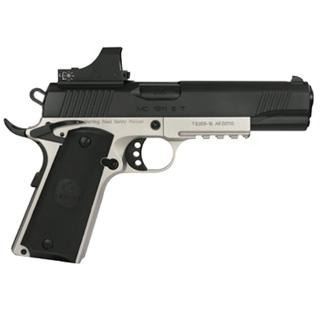 FEATURES: CHECKERING FRAME GRIP FORE AND AFT, AMBO SAFETY, FULLSIZE VERSION 1911, NICE TRIGGER 3.5 TO 4 LBS, NOVAK® STYLE REAR SIGHT, EXTENDED BEAVER TAIL AND CHECKERING, STEEL MACHINES FRAME AND SLIDE, LONG HOLE HAMMER, DEEP SLIDE SERRATIONS, UNDER-BARREL ACCESSORY RAIL 45acp 8+1 capacity