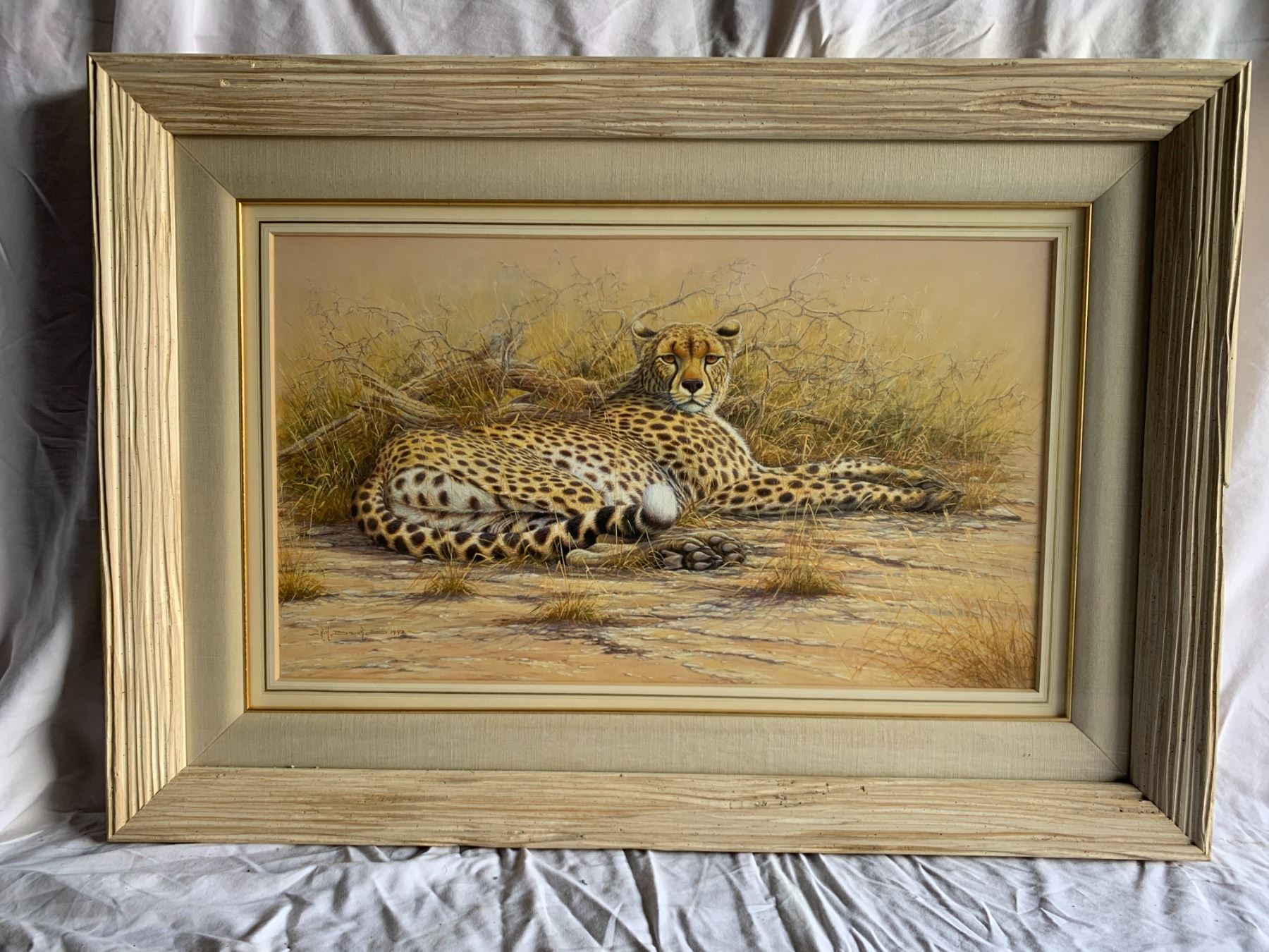 Beautiful framed picture of cheetah by artist Kim Brooks.
