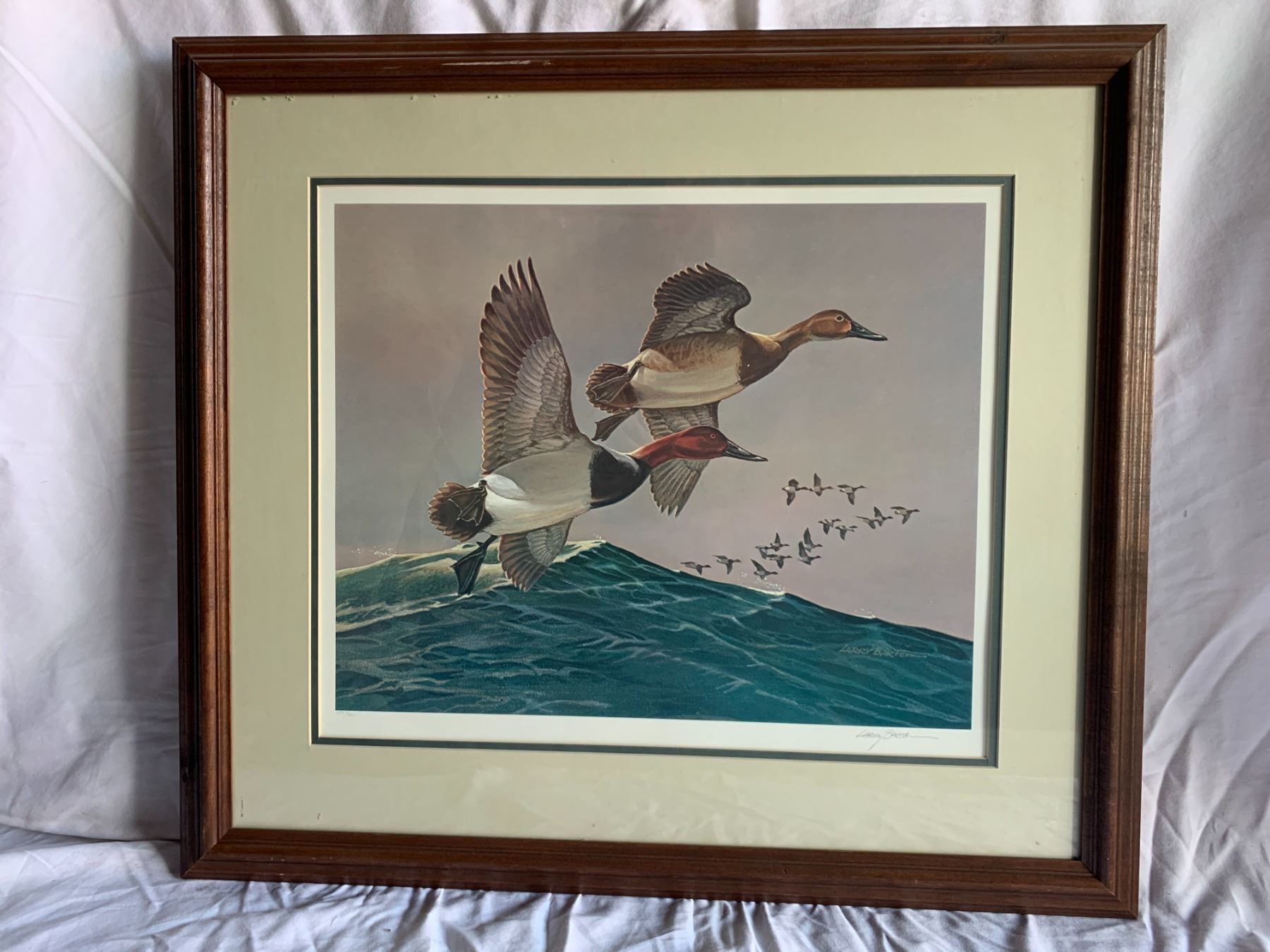 "Winter Cans" - framed picture of canvasback ducks by artist Larry Barton.