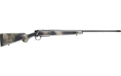 Bridging the gap between the B-14 and Premier Series, Bergara brings you the B-14 Wilderness Series. This series tackles the need for rifles that can withstand the rugged and unforgiving wilderness while blending into those very same elements - hence Bergara's hand-painted camouflage stocks with added webbing for increased texture and grip. All Wilderness Series barreled actions feature Sniper Grey Cerakote finishes for advanced protection in extremely harsh weather. The B-14 Wilderness Ridge rifle features an American-style synthetic stock with SoftTouch finish. This rifle is also outfitted with a Bergara Performance Trigger and a hinged floor plate. The world-renowned (#5) Bergara barrel is finished in Sniper Grey Cerakote and features a seamless, omnidirectional, and multi-ported muzzle brake that will reduce felt recoil by up to 35 percent. The Wilderness Ridge is complemented by Bergara's super-smooth B-14 Action, which is a two-lug system with a sliding plate extractor and a coned bolt nose and breech to ensure smooth feeding and extraction of the cartridge. It has been factory drilled and tapped to fit Remington 700 style rings and bases.