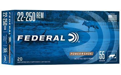 Federal, PowerShok, 22-250, 55 Grain, Soft Point, 20 Round Box