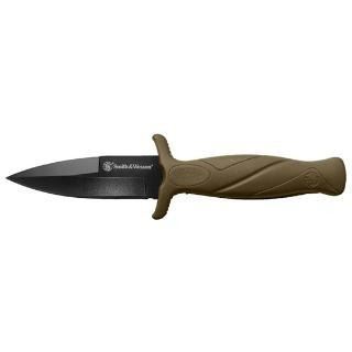 Smith & Wesson® FDE Boot Knife is ideal for carrying on you when you're on-the-go. It has a single edge with finger guards and a rubberized polymer handle for a quick draw and maximized control. Weighing at 1.6 ounces and a blade length of 2.75" it's perfect for concealed carry. Included is a plastic sheath.
