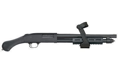 Mossberg, 590 Shockwave, Pump Action, 12 Gauge, 3" Chamber, Shotgun, Stand Off 14.375" Barrel, Matte Blued Finish, Synthetic Stock, Shockwave Grip, M-LOK Forend w/Chainsaw Strapped Grip, Cylinder Bore Choke, 5Rd, Bead Sight